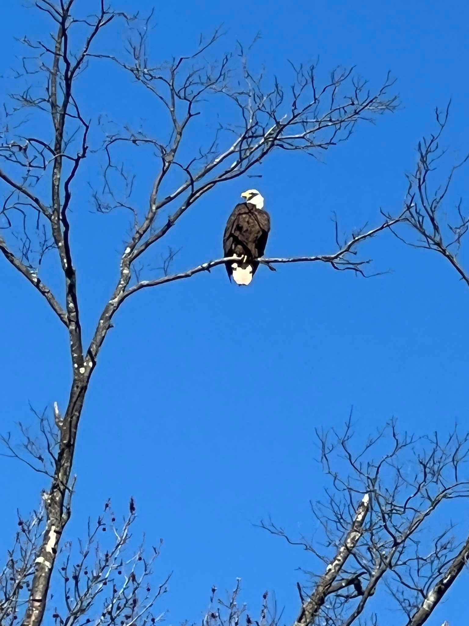 Regina from Fairless Hills shared this proud eagle taking in the scenery (while also becoming the scenery - magnificent really). You can see their huge nest right off route 13 at the Tyburn Road exit.